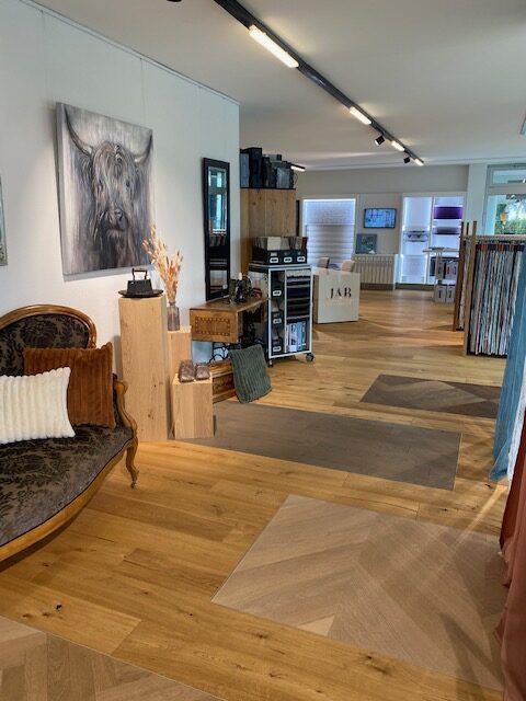 Kommen Sie rein und lassen Sie sich von unseren Showrooms inspirieren. Mit verschiedenen Muster finden wir bestimmt den passenden Bodenbelag und den richtigen Vorhang- oder Polsterstoff.